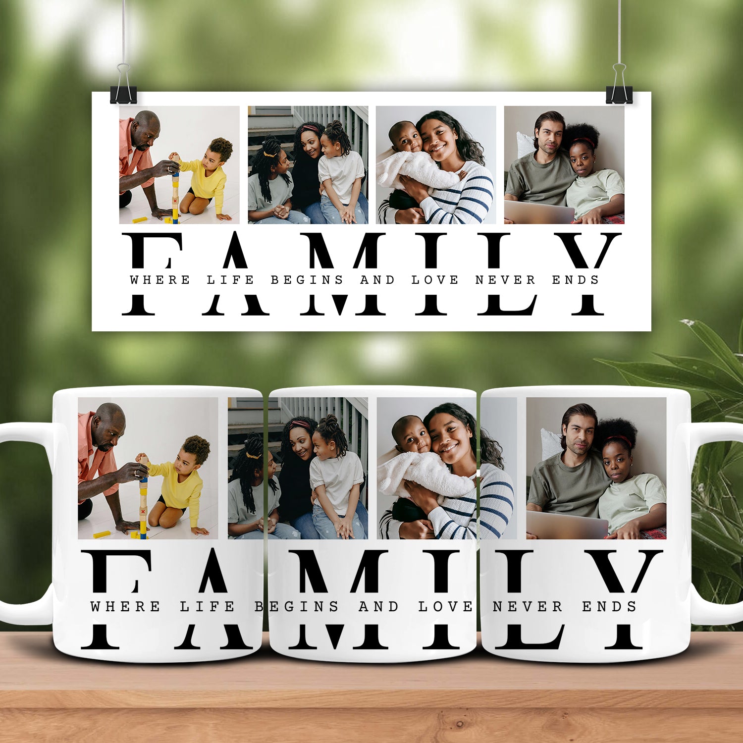 Custom Family Photo Where Life Begins and Love Never Ends Mug