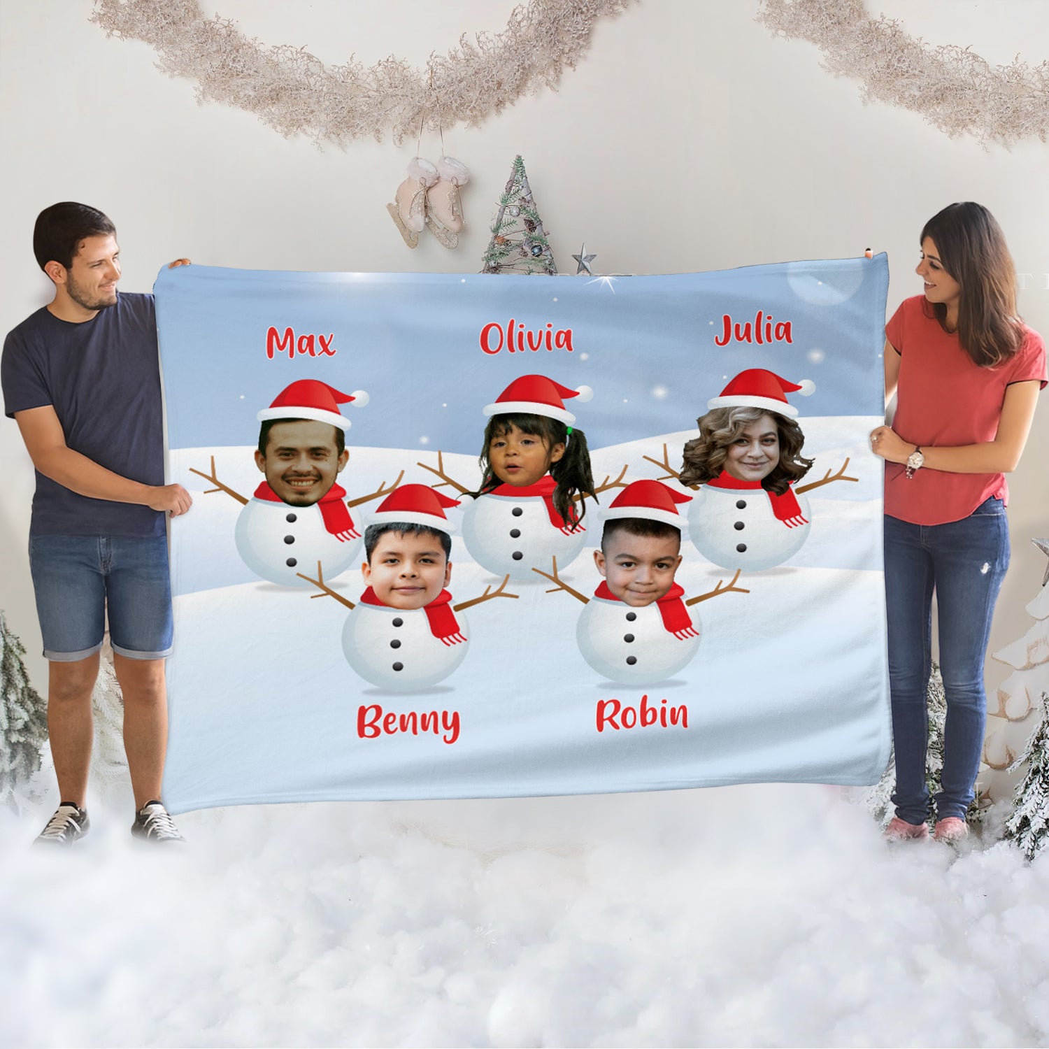 Snowman Family Cozy Fleece Blanket – 50 x 60